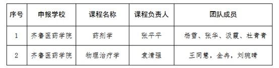 近日,從山東省教育廳《關(guān)于2021年山東省普通本科教育課程思政示范課程、普通高等教育教學研究示范中心評審遴選結(jié)果的公示》《關(guān)于山東省繼續(xù)教育課程思政示范課程、繼續(xù)教育教學研究示范中心評審遴選結(jié)果的公示》文件獲悉,齊魯醫(yī)藥學院中醫(yī)藥產(chǎn)業(yè)研究院張平平教授主持申報的《藥劑學》獲批山東省普通本科教育課程思政示范課程,臨床醫(yī)學院袁清強副教授主持申報的《物理治療學》獲批山東省繼續(xù)教育課程思政示范課程。