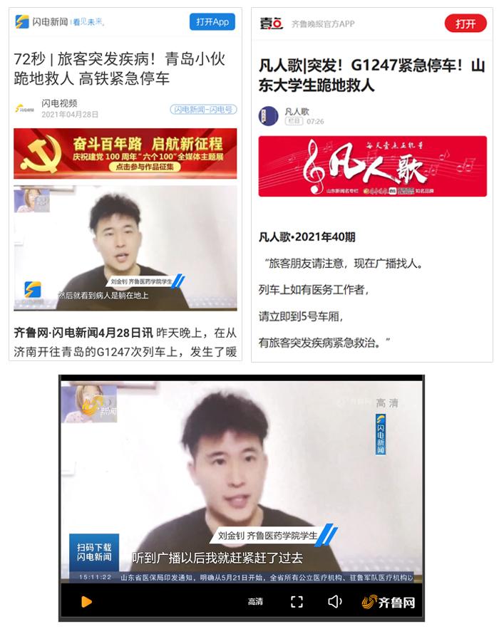 4月27日20:01分,在濟南站開往青島北站的G1247次列車上,一旅客突發(fā)暈厥、渾身抽搐。緊急時刻,齊魯醫(yī)藥學(xué)院學(xué)生劉金釗挺身而出、果斷出手,與列車員、熱心旅客一同展開施救。“當(dāng)時第一反應(yīng)不是害怕,而是想幫著旅客渡過危險期,把我在學(xué)校學(xué)到的專業(yè)知識和急救技能全部用上,盡最大的努力為病人減輕痛苦,爭取延續(xù)生命的機會。” 談到此次救人行為,劉金釗這樣說。他的事跡,先后被山東電視臺新聞頻道、齊魯晚報、齊魯壹點、海報新聞等10多家媒體關(guān)注報道。