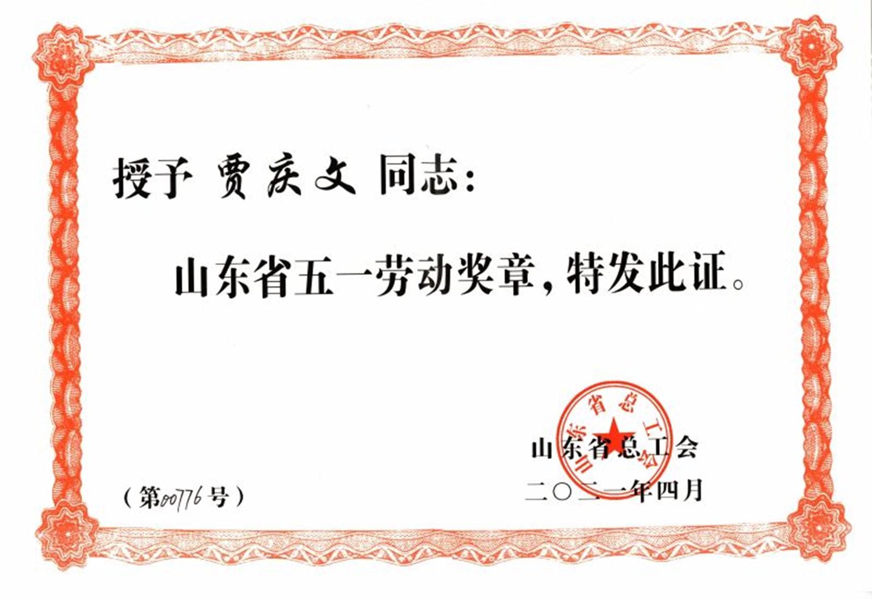 山東省五一勞動獎章是山東省總工會授予在中國特色社會主義建設中作出突出貢獻的勞動者的光榮稱號,是省內工人階級最高榮譽獎項之一。