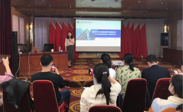 隋宜宏、王姿靚分別在會(huì)議上作了題為《基于工作過程的教學(xué)過程設(shè)計(jì)》《向?qū)嵺`要答案,用創(chuàng)新求突破》的報(bào)告。