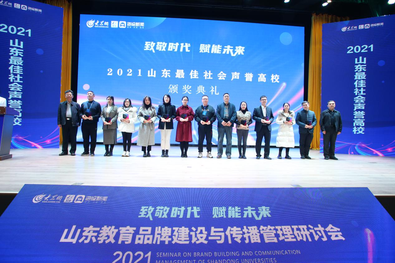 12月24日,由山東省互聯(lián)網(wǎng)傳媒集團主辦、泰山科技學(xué)院承辦的2021山東教育品牌建設(shè)與傳播管理研討會召開。山東商院入圍“2021山東最佳社會聲譽高校”“2021山東最具影響力教育政務(wù)融媒體”榜單。