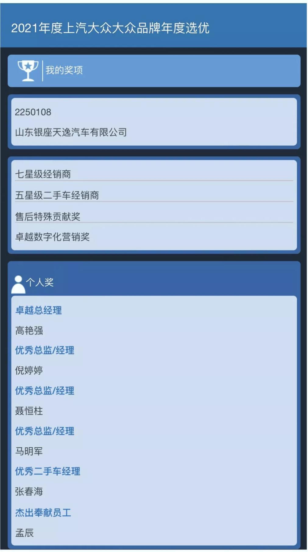 從2018年到2021年,4度蟬聯(lián)“七星級經(jīng)銷商”是上汽大眾對銀座天逸經(jīng)營管理水平的充分認(rèn)可,是廣大消費(fèi)者對公司服務(wù)滿意度的真實(shí)反映,是公司全體職工勠力同心達(dá)成“山東省銷量第一、運(yùn)營質(zhì)量全國一流”目標(biāo)的成果體現(xiàn)。