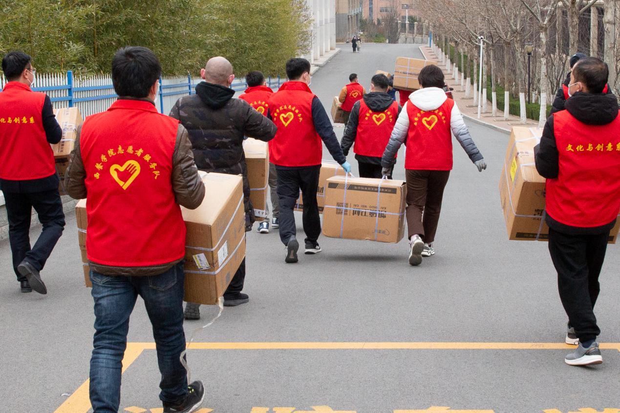 因貨運車輛無法進入,防疫物資運抵校園后如何運輸成了問題。學院黨委集中整合各部門黨員組成抗疫志愿者服務隊,趕赴現場進行搬運、整理、清點防疫物資等工作,近150箱應急物資不到1小時便全部搬運完成。