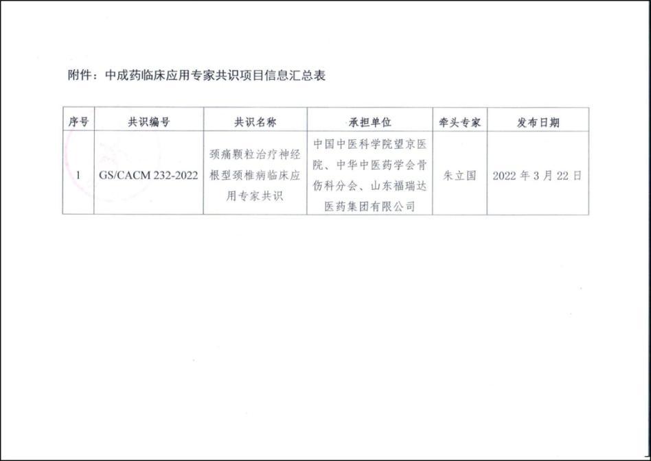 3月22日,由中華中醫(yī)藥學(xué)會骨傷科分會、福瑞達(dá)共同提出,中華中醫(yī)藥學(xué)會立項的《頸痛顆粒治療神經(jīng)根型頸椎病臨床應(yīng)用專家共識》(以下簡稱《頸痛顆粒專家共識》)正式發(fā)布。
