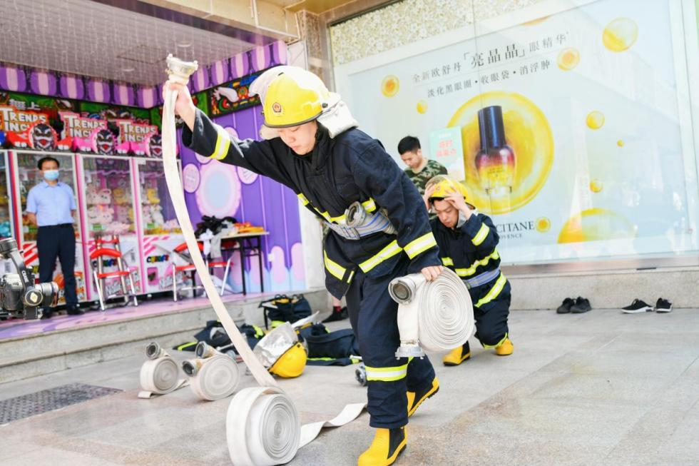 銀座濟南廣場店代表宣讀“第一責任人安全倡議書”活動方案,現場展示個人防護裝備穿戴、消防水帶連接、滅火器操作等技能項目,并開展應急處置演練,充分展現了應急隊伍的戰斗力。