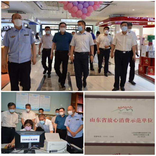 近日,省市監(jiān)局一級巡視員朱坤峰一行到銀座濟寧商城店調(diào)研放心消費創(chuàng)建、消費維權(quán)服務站規(guī)范化建設等工作,濟寧市副市長張東,任城區(qū)委副書記、區(qū)長宋華東,濟寧市市監(jiān)局黨組書記、局長候典峰,任城區(qū)政府副區(qū)長孔繁華,任城區(qū)市場監(jiān)管局黨組書記、局長陳偉陪同。