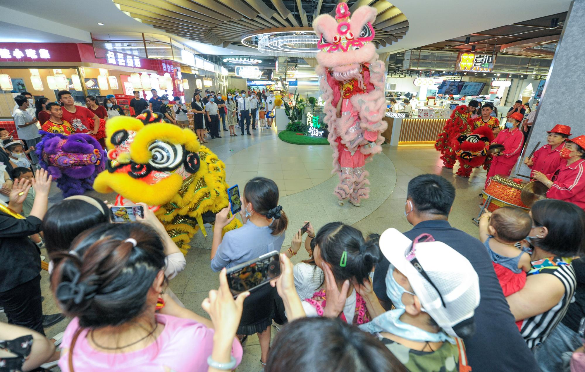 活動現(xiàn)場,伴著鏗鏘鼓樂,精彩的醒獅表演在騰挪漫步、跳躍嬉戲中,將生龍活虎、蒸蒸日上的精氣神表現(xiàn)的淋漓盡致,引來眾多顧客的駐足和喝彩。