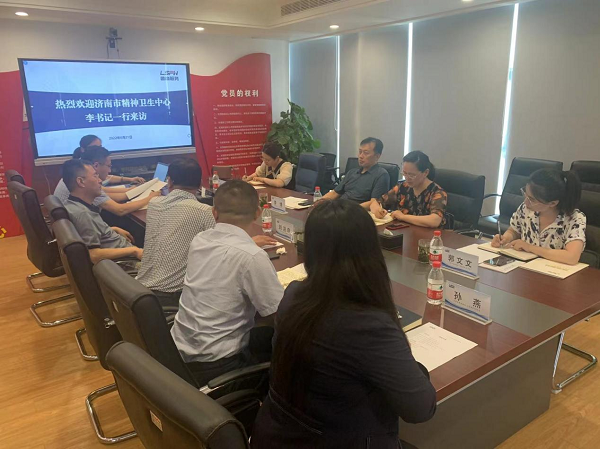 6月21日,濟南市精神衛生中心黨支部書記、主任李博一行到魯商服務進行參觀考察,魯商服務總經理王忠武熱情接待并舉行座談。