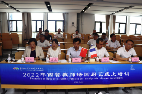 7月18日,青島酒店學院舉行法國佩里格酒店學院廚藝在線進修課程開班儀式。法國佩里格酒店學院院長卡蒂·荷璐、副院長兼教學主任福洛倫絲·木蘭,青島酒店學院黨委副書記韓西清參加活動。