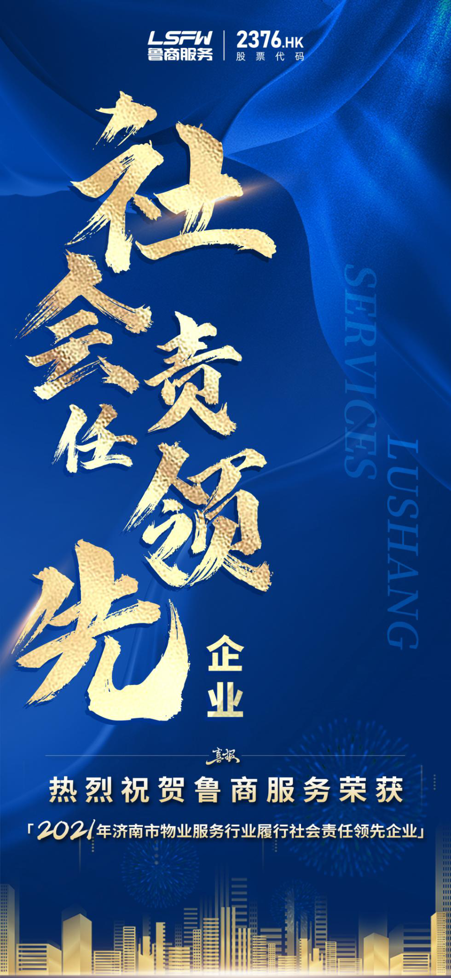 12月7日,濟(jì)南市物業(yè)管理行業(yè)協(xié)會(huì)發(fā)布《2021濟(jì)南物業(yè)管理行業(yè)年鑒》,魯商服務(wù)獲“2021年濟(jì)南市物業(yè)服務(wù)綜合實(shí)力領(lǐng)先企業(yè)”“2021年濟(jì)南市物業(yè)管理面積領(lǐng)先企業(yè)”“2021年濟(jì)南市物業(yè)服務(wù)營業(yè)收入領(lǐng)先企業(yè)”和“2021年濟(jì)南市物業(yè)服務(wù)行業(yè)履行社會(huì)責(zé)任領(lǐng)先企業(yè)”四項(xiàng)榮譽(yù)。