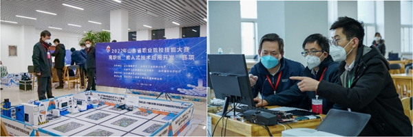 來自全省各高職高專院校的30支隊伍參加了“嵌入式技術(shù)應用開發(fā)”賽項比賽,山東商院選派的3名學生面對高強度高難度的比賽任務,穩(wěn)定發(fā)揮,最終取得省賽第一名的好成績,體現(xiàn)了良好的職業(yè)素養(yǎng),充分展示了學校師生積極向上、奮發(fā)進取的精神風貌和職教改革成果。作為“嵌入式技術(shù)應用開發(fā)”賽項承辦院校,山東商院嚴格按照承辦工作要求,精心組織,做好大賽各項服務和保障工作。比賽過程中,各參賽隊伍嚴格遵守比賽規(guī)則,積極應賽,實現(xiàn)專業(yè)技能、職業(yè)素質(zhì)和職業(yè)精神的有機融合,將工匠精神落到實處。
