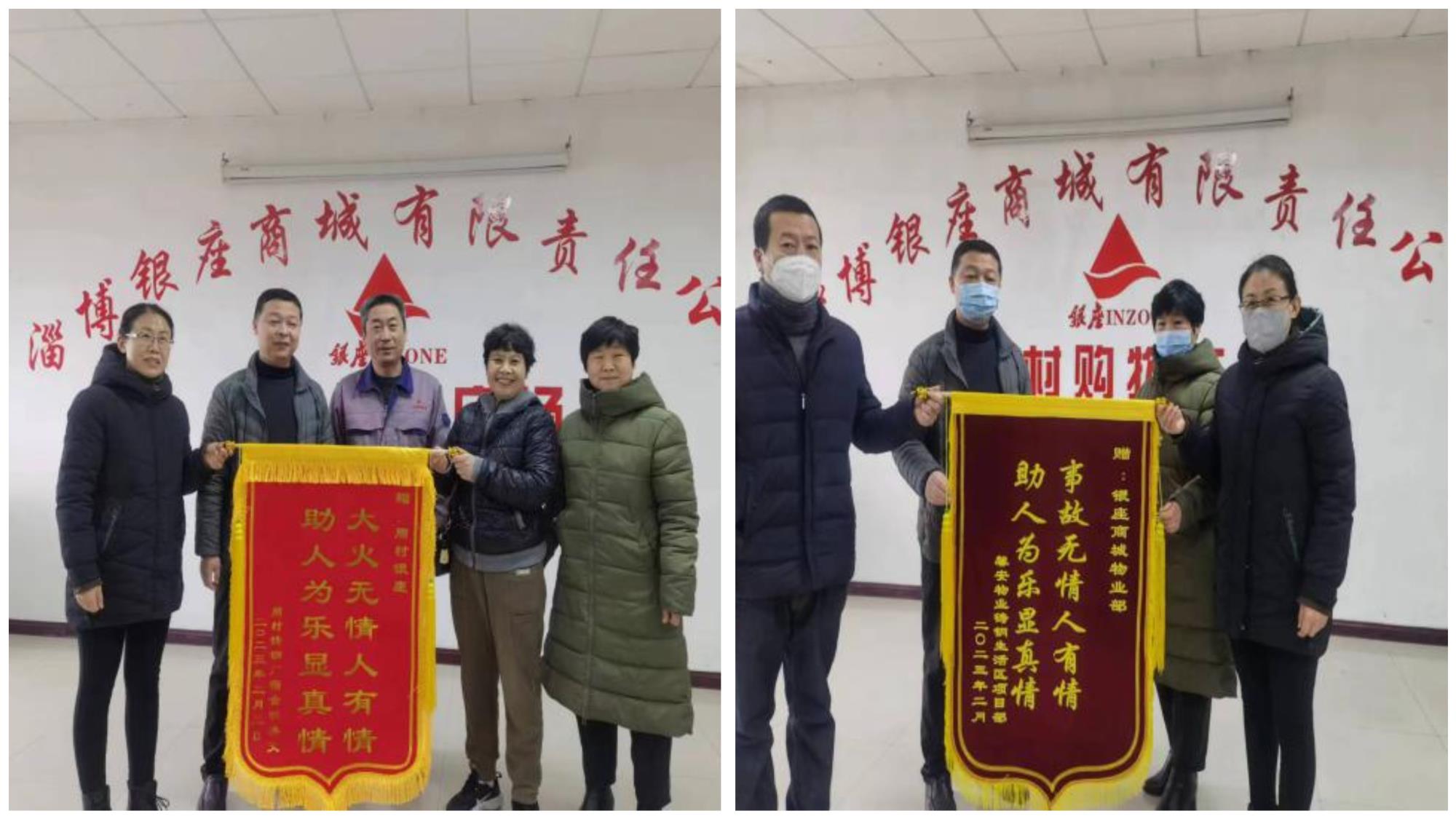 銀座員工臨危不懼和見義勇為的義舉讓小區(qū)居民贊不絕口,得到了區(qū)消防大隊(duì)的高度認(rèn)可,稱贊他們面對突發(fā)火情處置得當(dāng),保護(hù)了人民群眾的生命和財(cái)產(chǎn)安全。2月10日,鑄鋼廠小區(qū)物業(yè)及居民代表送來錦旗表示感謝。