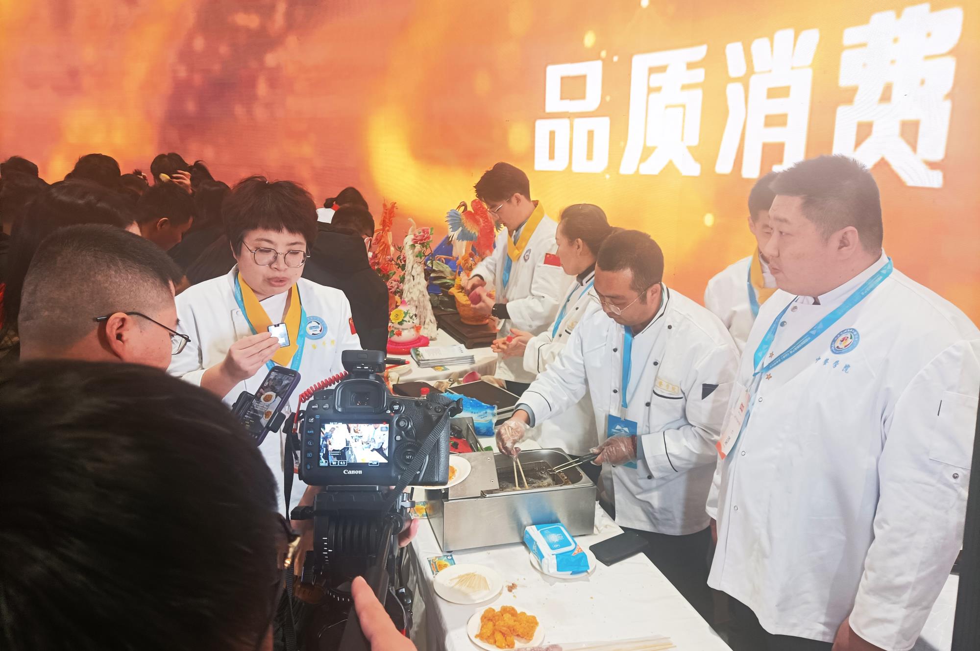 據中餐學院現場負責人介紹,本次學院帶來烹調、面塑等技術與產品展示,體現了學院的整體實力,背后則是以中國烹飪大師、中國面點大師、高級營養師為骨干的專業教師隊伍所組成的雄厚師資力量,以及學院產教融合成果。
