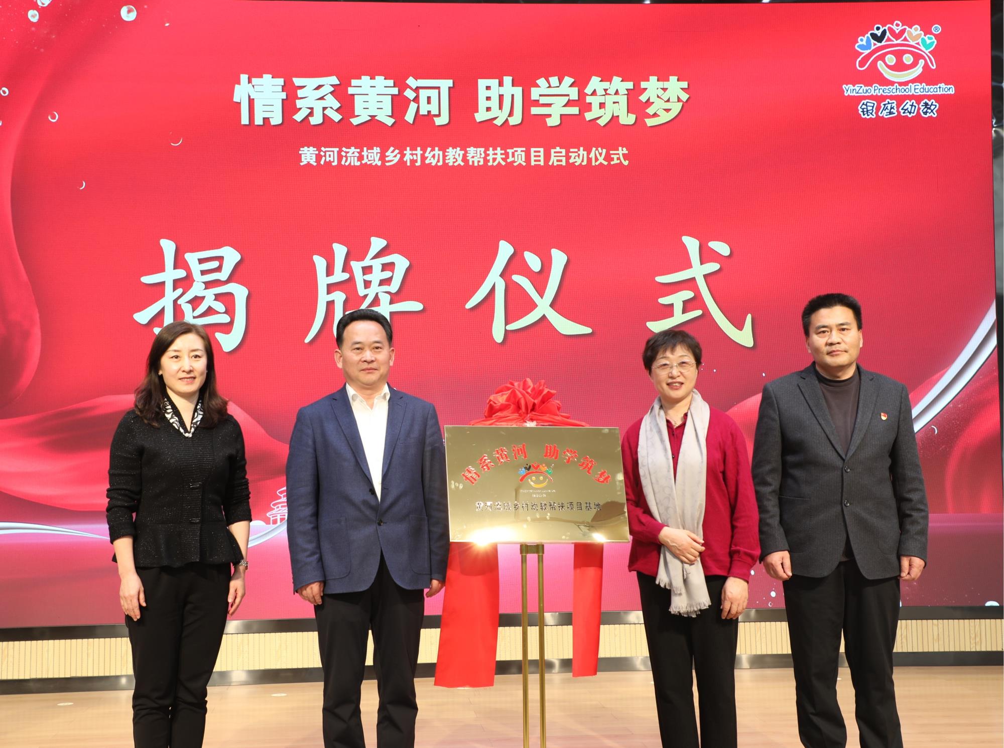 與會(huì)領(lǐng)導(dǎo)共同為“情系黃河 助學(xué)筑夢(mèng)”黃河流域鄉(xiāng)村幼教幫扶項(xiàng)目揭牌。
