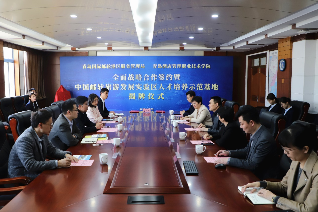 青島國際郵輪港區(qū)服務管理局綜合部、郵輪文旅部,青島酒店學院相關負責人參加活動。