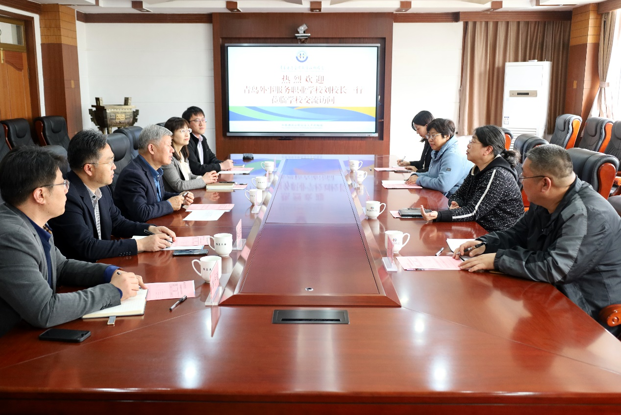 劉宇虹介紹青島外事服務(wù)職業(yè)學(xué)校發(fā)展建設(shè)情況和此次考察交流的目的,并就專業(yè)建設(shè)、教學(xué)及科研、招生就業(yè)等工作進(jìn)行分享交流。