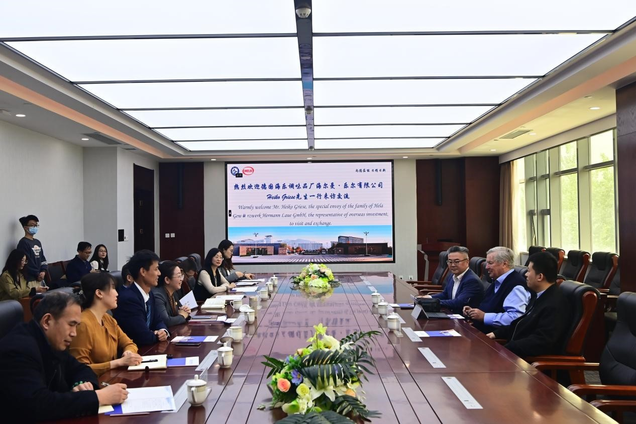 4月12日,德國(guó)海爾曼·樂(lè)爾有限公司家族特使、海外投資代表Heiko Griese一行3人到訪山東商院,就食品產(chǎn)業(yè)實(shí)訓(xùn)基地暨海樂(lè)德式香腸研創(chuàng)中心建設(shè)情況、德國(guó)海樂(lè)“師徒制”人才培養(yǎng)實(shí)踐等相關(guān)工作進(jìn)行研討。山東商院黨委副書(shū)記、院長(zhǎng)王鑫,黨委副書(shū)記宋超參加活動(dòng)。