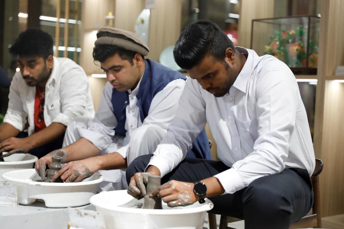 近日,來自巴基斯坦、孟加拉國、也門等國家的16名山東商院外籍師生參觀山東老字號(hào)暨非遺文化體驗(yàn)館,在專業(yè)老師的指導(dǎo)下,了解并體驗(yàn)陶瓷拉胚、魯繡、掐絲琺瑯、手工和香等非遺項(xiàng)目。