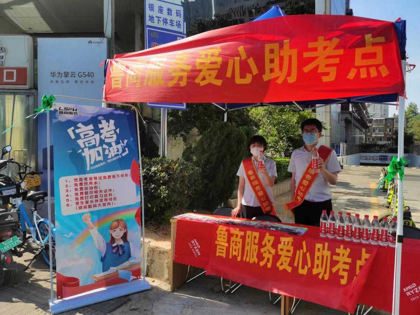 考慮到多名考生在魯商服務銀座晶都項目園區公寓居住,項目在一個月前就著手準備助考事宜。項目管家每天一早發布天氣預報,提醒家長及時應對天氣變化;發起靜音倡議,引導業主錯時裝修,降低對考生的影響;在高考前24小時,項目對車位進行重新劃分,為陪考家長停車創造便利條件,抽調專門服務人員在實驗中學考點前搭建愛心助考點,為陪考家長及考生免費提供飲水、扇子、文具等物品。
