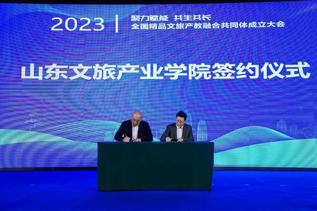 11月18日,青島酒店管理職院聯(lián)合山東文旅集團(tuán)、中央民族大學(xué)發(fā)起的全國精品文旅產(chǎn)教融合共同體成立大會在山東濟(jì)南舉行。省文旅廳黨組成員、副廳長孫蕾,省國資委黨委委員、副主任、財(cái)務(wù)監(jiān)管處處長秦春玲,省教育廳職業(yè)教育處副處長郭慶志,山東文旅集團(tuán)黨委書記、董事長丁藝,中央民族大學(xué)校長助理韋達(dá)提·米吉提,青島酒店管理職院黨委書記李達(dá),副校長張宗國出席大會。