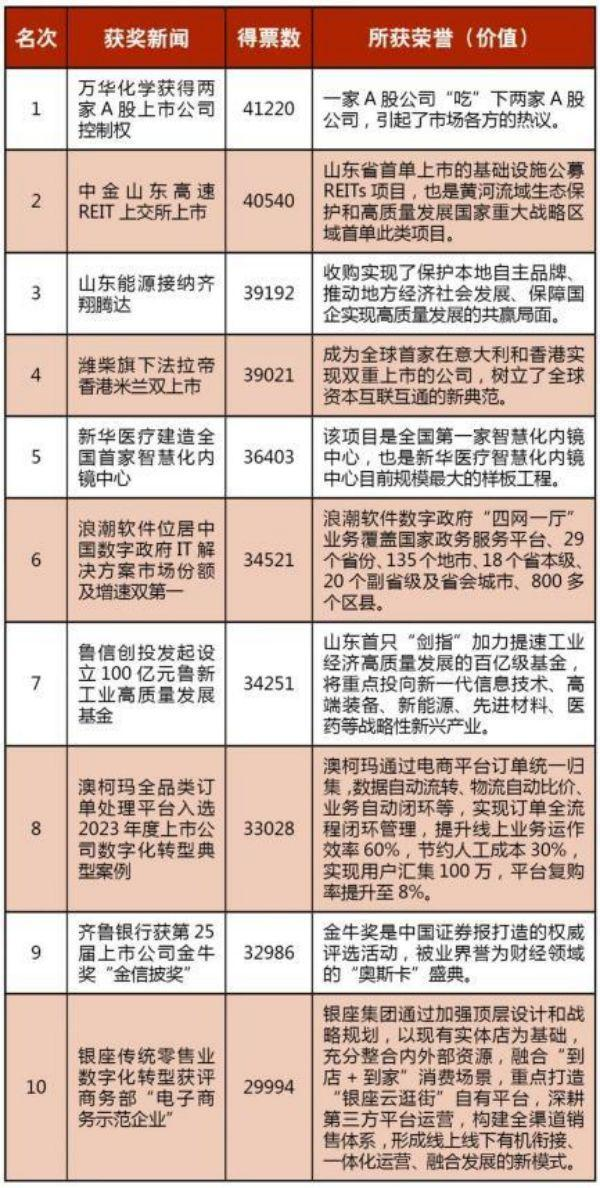 近日,在省國(guó)資委和大眾報(bào)業(yè)集團(tuán)的指導(dǎo)下,由《山東國(guó)資》編輯部組織發(fā)起的“2023山東國(guó)資國(guó)企年度新聞評(píng)選”活動(dòng),經(jīng)廣大國(guó)資國(guó)企員工踴躍投票和專家評(píng)議,評(píng)出“科技創(chuàng)新”“綠色低碳”“上市公司”三個(gè)類別的十大新聞。本次活動(dòng)共收到72家省屬、市屬企業(yè)提報(bào)的131條新聞,錄得58970張有效投票?!懊魅矢H疬_(dá)獲評(píng)國(guó)家級(jí)綠色工廠”“銀座傳統(tǒng)零售業(yè)數(shù)字化轉(zhuǎn)型獲評(píng)商務(wù)部‘電子商務(wù)示范企業(yè)’”分別上榜“綠色低碳”“上市公司”十大新聞。