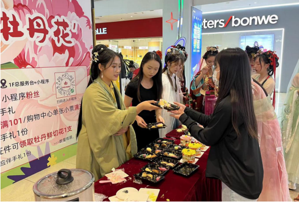 4月13日至5月5日,“嘻游劇場·城市花園”主題劇場陸續(xù)開展“送你一朵牡丹花”“牡丹花朝節(jié)”“牡丹佳肴”等活動,邀消費者共同賞牡丹、品牡丹、拍牡丹,構(gòu)建城市文化屬性消費場景。其中,4月13日組織開展的“千人舞慶牡丹節(jié)”活動,超千人次參與,菏澤廣電等媒體高頻傳播,擴大了活動的熱度。