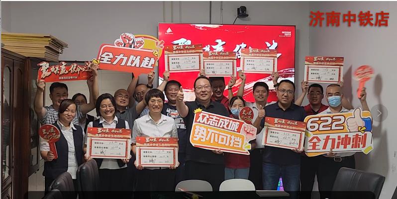 誓師大會(huì)上,各經(jīng)營部門負(fù)責(zé)人以不留退路、只能向前的信念簽訂軍令狀,許下“戰(zhàn)無不勝 誓耀622”的誓言。黨員模范帶頭、青年奮勇爭(zhēng)先,全體員工以飽滿的精神狀態(tài)、鏗鏘有力的聲音喊出征戰(zhàn)周年慶最強(qiáng)音,展現(xiàn)出昂揚(yáng)的斗志和使命必達(dá)的決心。