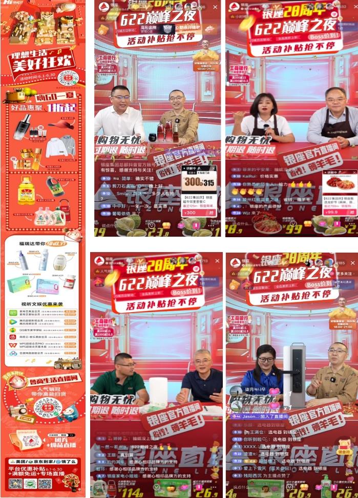 6月22日,銀座集團組織開展“622巔峰之夜”直播,邀請明星達人成為公域平臺好物推薦官,取得了12小時直播帶貨GMV突破1000萬元、直播間曝光突破1300萬、登頂抖音全國綜合商場帶貨榜首的好成績,銀座周年慶的消費熱潮達到巔峰。