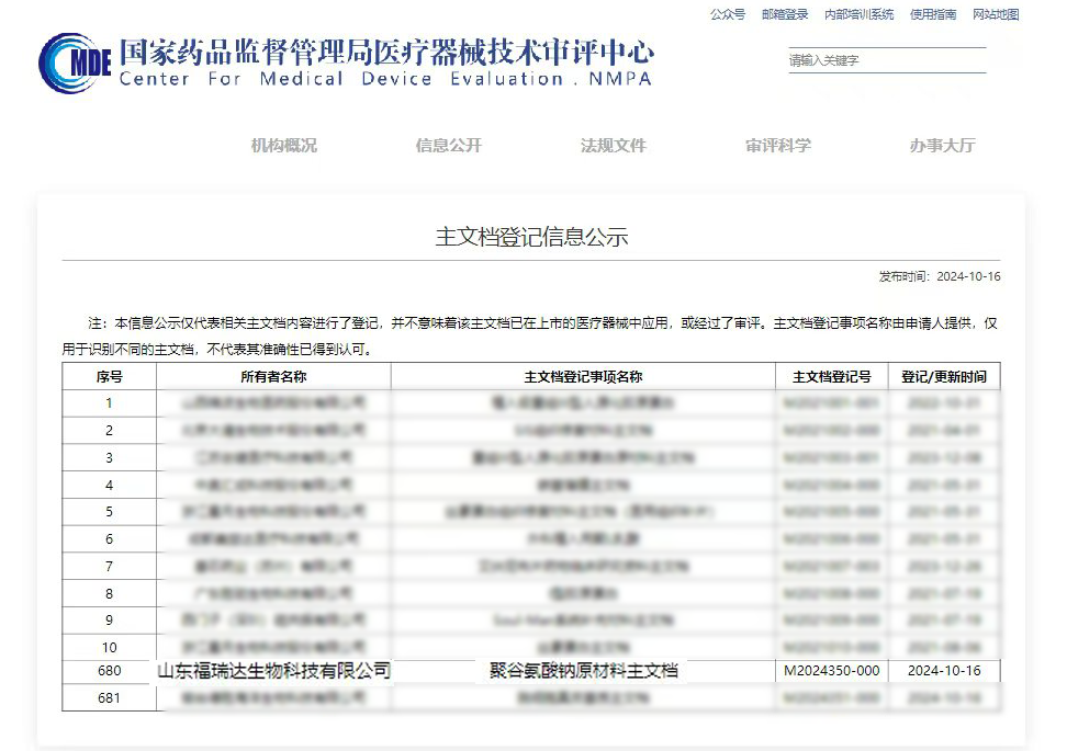 近日,國家藥品監(jiān)督管理局醫(yī)療器械技術(shù)審評(píng)中心官網(wǎng)公示,福瑞達(dá)生物科技自主研發(fā)的醫(yī)療器械用聚谷氨酸鈉成功通過主文檔備案,成為國內(nèi)第一家完成該類產(chǎn)品主文檔備案的企業(yè)。