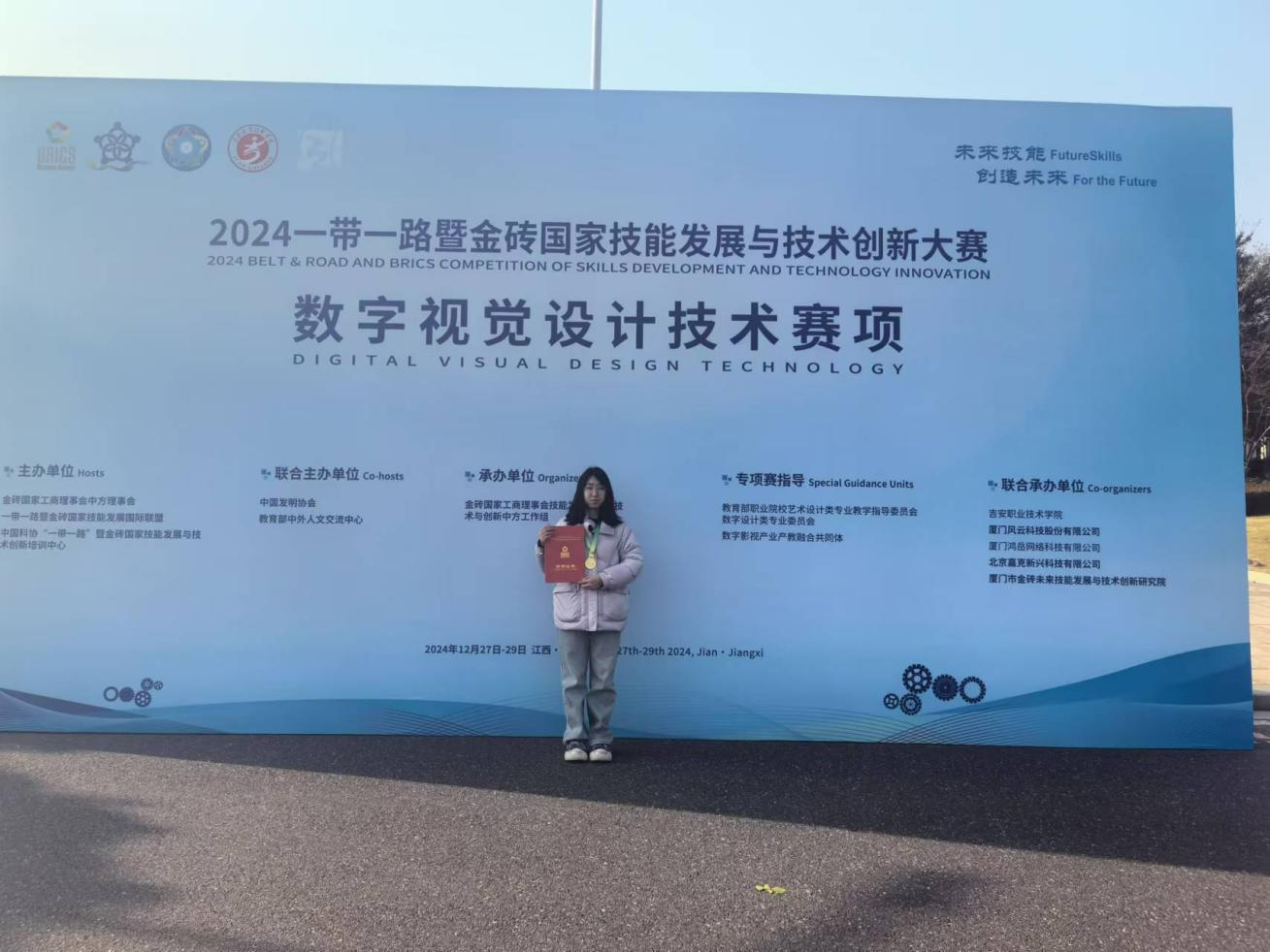 近日,2024年一帶一路暨金磚國(guó)家技能發(fā)展與技術(shù)創(chuàng)新大賽數(shù)字視覺設(shè)計(jì)技術(shù)賽項(xiàng)(高職組)國(guó)內(nèi)總決賽順利舉行。山東城市服務(wù)職院學(xué)生郭冰琛憑借出色的技能和創(chuàng)新能力,斬獲數(shù)字視覺設(shè)計(jì)技術(shù)賽項(xiàng)國(guó)賽一等獎(jiǎng)。