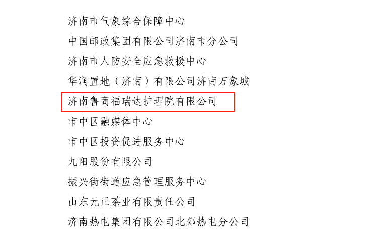 濟南魯商福瑞達護理院獲“濟南市安全生產表現突出集體”稱號