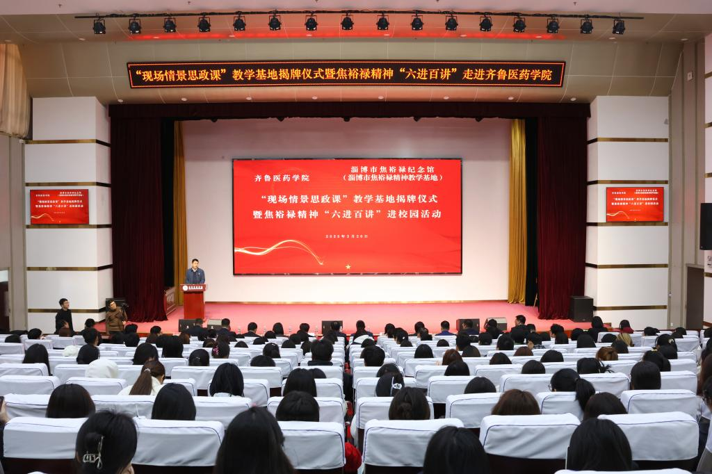 為弘揚(yáng)焦裕祿精神,傳承紅色基因,近日,齊魯醫(yī)藥學(xué)院與淄博市焦裕祿紀(jì)念館“現(xiàn)場情景思政課”教學(xué)基地揭牌儀式暨焦裕祿精神“六進(jìn)百講”進(jìn)校園活動成功舉行。