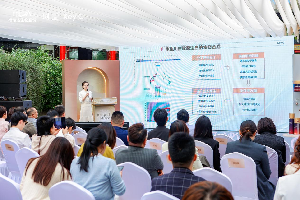 近日,福瑞達生物股份旗下品牌珂謐KeyC舉辦2025重組膠原蛋白技術(shù)發(fā)布會暨珂謐KeyC穿膜膠原新品首發(fā)式。會上,珂謐研發(fā)團隊重磅發(fā)布行業(yè)首創(chuàng)的穿膜膠原技術(shù),相比傳統(tǒng)膠原皮下滲透率提高27.5倍,實現(xiàn)行業(yè)顛覆性創(chuàng)新,標志著我國重組膠原蛋白技術(shù)研究水平再上新臺階。