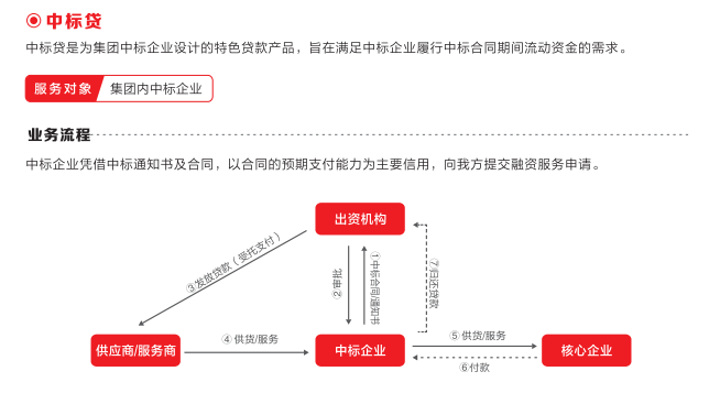 “中標貸”產品是富源小貸為集團內項目中標企業專門開發設計的特色貸款產品,旨在滿足中標企業在履行中標合同期間的流動資金需求,精準實現審批高效、放款迅速、場景化服務定制,為中標企業提供了高效的融資渠道。