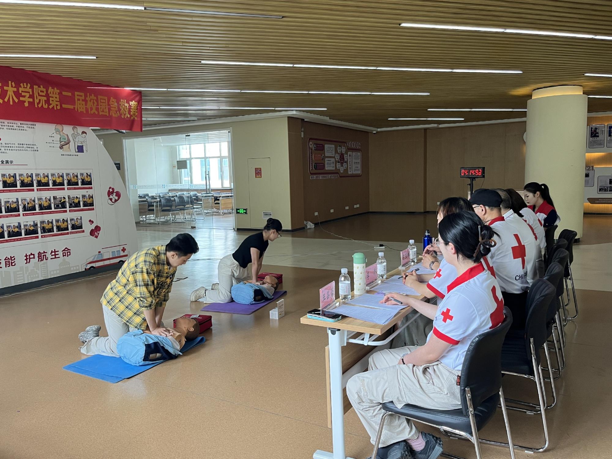 為進一步激發學生學習熱情,檢驗培訓成果,6月19日青島酒店管理職院舉辦了第二屆校園急救賽。比賽以“青春‘救’有力量”為主題,8個學院選拔推薦29名選手參加了比賽。比賽特邀青島市紅十字會理事、救護師資委員會主任王豐田,中國紅十字資深應急救護講師高玉瑞、沈曉芳及校內師資擔任評委,主要考核心肺復蘇與AED的使用,經過激烈角逐,最終評選出一、二、三等獎及優秀獎。比賽優秀選手作為“學生導師”將參與到后續的急救培訓中,充分發揮同伴教育優勢,在校內形成了“傳、導、幫、帶”良好風尚。