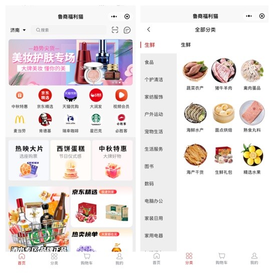 福利卡券可在“魯商福利貓”平臺(tái)進(jìn)行消費(fèi),平臺(tái)涵蓋300+蛋糕品牌、10000+蛋糕門店、10000+影院,為員工提供了廣泛的美食休閑選擇。平臺(tái)還整合了京東、天貓等知名電商的供應(yīng)鏈資源,涵蓋22大商品品類、70000+商品,確保商品品質(zhì)與種類的豐富性。此外,平臺(tái)還支持美團(tuán)、肯德基、星巴克等生活性消費(fèi),滿足員工日常生活的多樣化需求。