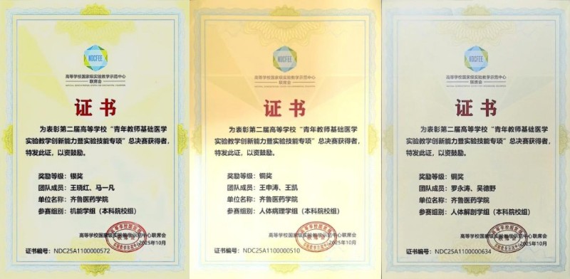 近日,由高等學校國家級實驗教學示范中心聯席會基礎醫學組、高等學校基礎醫學教師實踐技能協同創新發展聯盟聯合主辦的第二屆高等學校“青年教師教學創新能力(基礎醫學實驗技能專項)”總決賽順利落幕。齊魯醫藥學院教師團隊共斬獲1銀、2銅,充分彰顯了學校青年教師的專業風采與過硬實力。