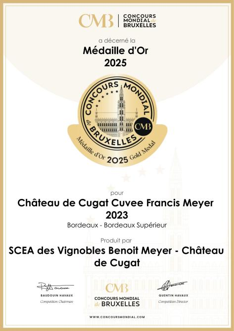 近日,魯商投資旗下法國古佳酒莊(SCEA des Vignobles Benoit Meyer)出品的2023年古佳弗朗西斯梅耶紅葡萄酒(Château de Cugat Cuvée Francis Meyer 2023)正式官宣開售。憑借卓越品質(zhì),該款葡萄酒在2025年寧夏銀川舉辦的第32屆布魯塞爾國際葡萄酒大獎(jiǎng)賽(CMB)中脫穎而出,斬獲大賽金獎(jiǎng),為其即將登陸市場奠定了權(quán)威品質(zhì)基石。