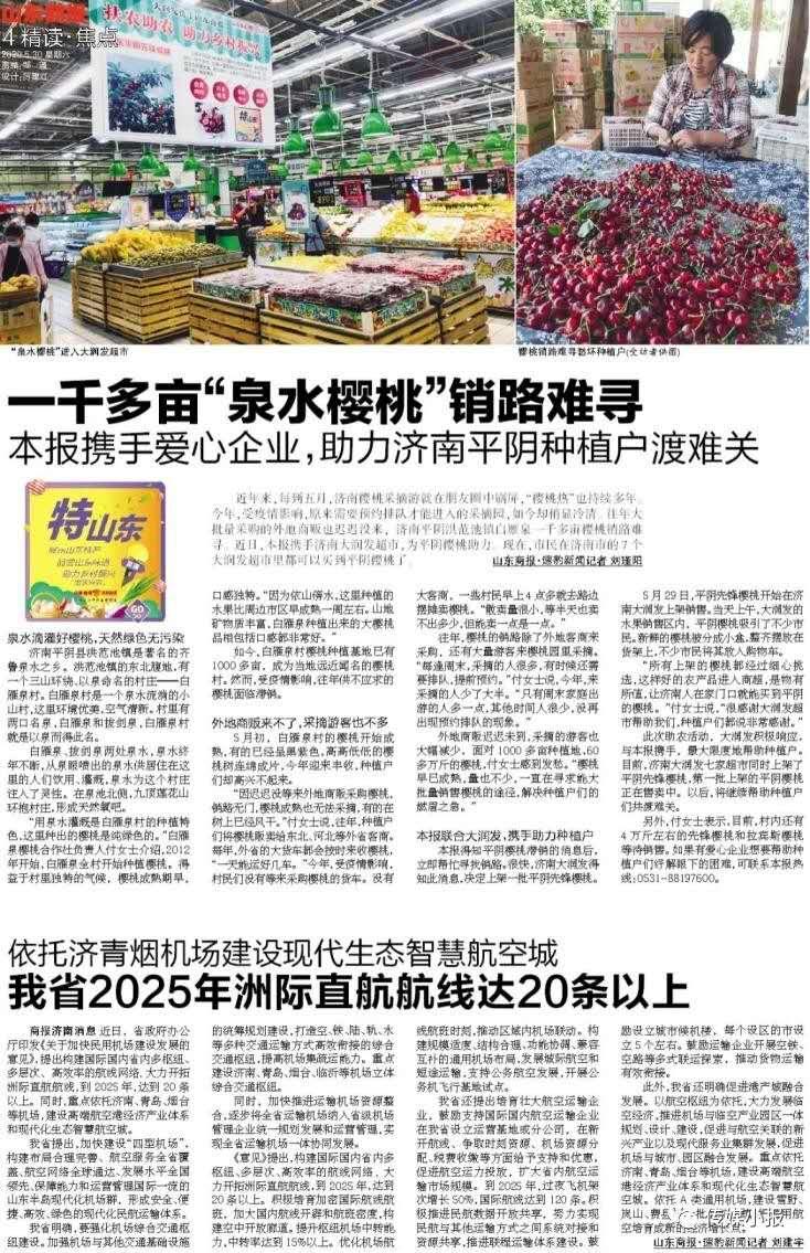 讓公益精神下鄉,為鄉村振興助力,用愛心凝聚更多人群。下一步,山東商報將招募更多的大型商超、快遞物流企業等熱心企業以及社區團購力量,做大做強“特山東”品牌,進而形成“公益助農聯盟”,一起為急需產品推廣的農戶拓寬銷路,讓更多的“鄉村好品”走出地頭、走上餐桌。(文/馬媛)